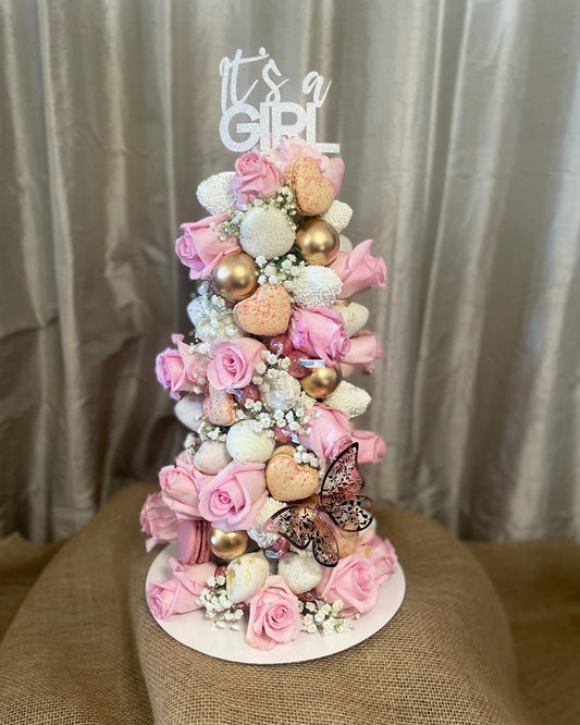 Strawberry, Macaron and Rose Tower
